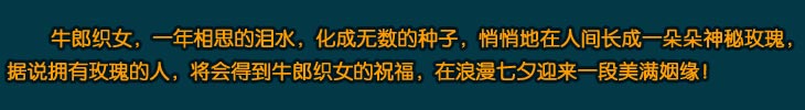 道具描述:梦想之城世代相传的爱情种子,传说获得神密玫瑰的人将能得到爱神的眷顾。