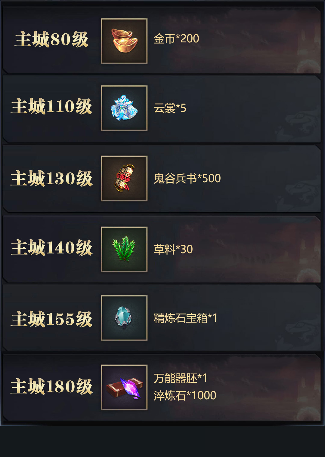 4、预约奖励:金币*500、银币*5万、战功*20万、军勋*1000、橙玉*500、蓝将顿悟礼包*5