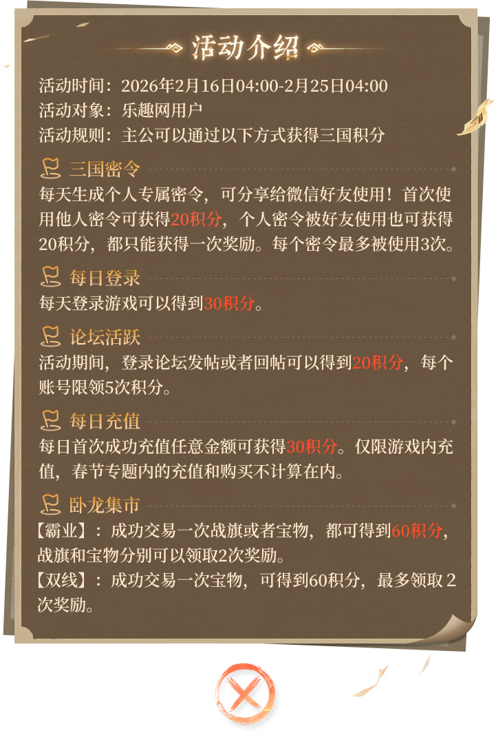 1.入驻规则:凡是在乐趣《卧龙吟》任意区服拥有主城等级≥180级的老用户,入驻霸业86区并且主城等级达到180级之后,可以领取入驻大礼包到新区角色。