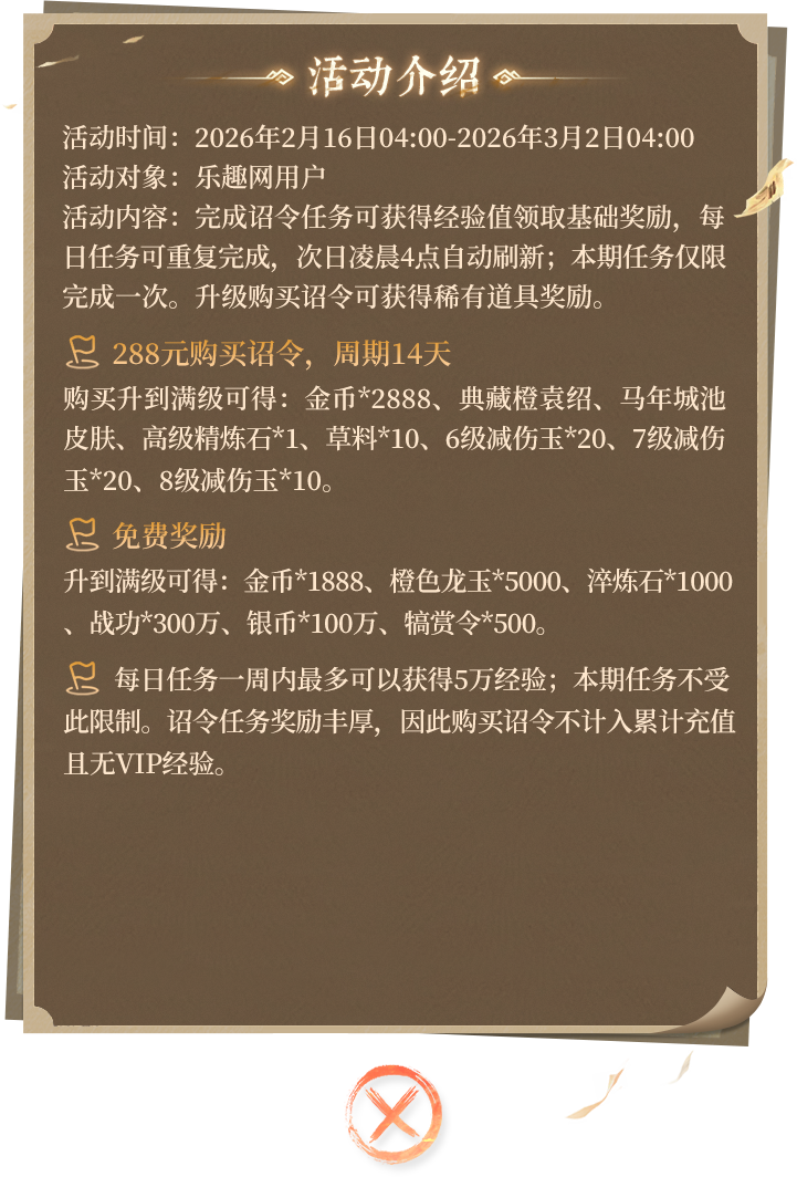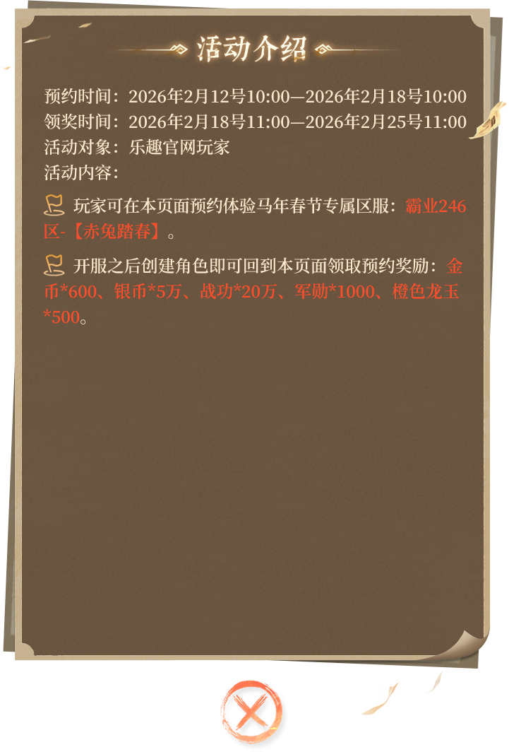 4.入驻奖励:新区角色奖励金币*500,银币*60万,草料*2,犒赏令*500,烛阴玉*1
