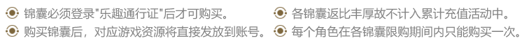 1.锦囊必须登录"乐趣通行证"后才可购买。