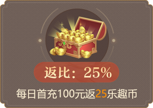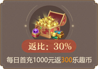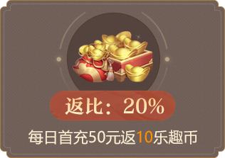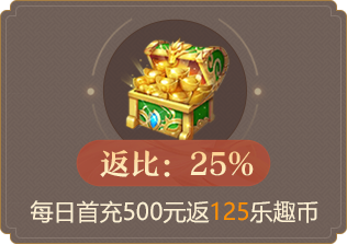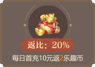 举例说明:小明在活动期间的某一日充值了4次,分别是10元2次,50元1次,500元1次,那么小明除了原来的充值奖励外,还可额外获得2、10、125,共计137乐趣币。