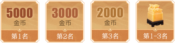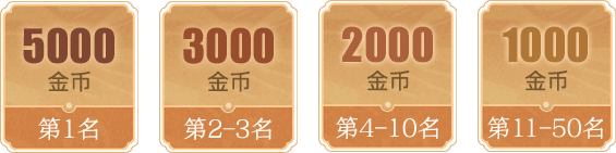 活动内容: 开区第7天11:00时,战力榜前50名可以得到额外金币奖励。奖励将于活动结束后的3个工作日内发放。