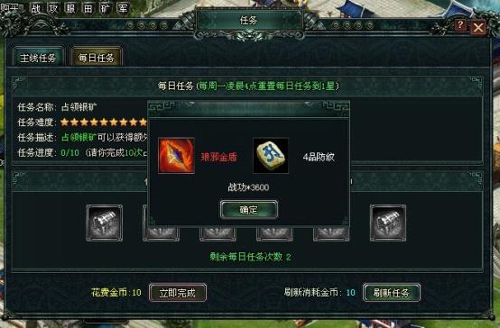 每年冬季,各地物资缺乏,商队会外出贸易,各城的商人也会重置。 每天凌晨4点,太守可以动用一次免费刷新商人的机会。 每日任务获得刻纹奖励 100级,5星以上的每日任务会增加刻纹奖励: 5星、6星任务:1级刻纹 7星、8星任务:2级刻纹 9星任务:3级刻纹 10星任务:4级刻纹