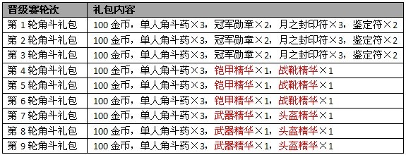 4.晋级赛各轮次礼包:参加晋级赛各轮次比赛的玩家都可获得对应轮次的礼包;
