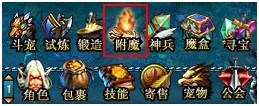 60级以上的玩家可以通过系统按钮【附魔】中的“附魔”对紫色饰品进行附魔进阶,从而获得橙色饰品。通过附魔可以增加紫色饰品的魔力值;当紫色饰品的魔力值达到上限后,可自动进阶成橙色。