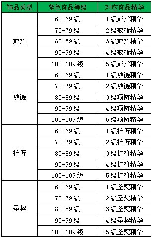 不同等级的紫色饰品需要用不同等级和对应类型的饰品精华进行附魔。