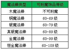 魔法棒的级别越高,可附魔的饰品等级上限越大。