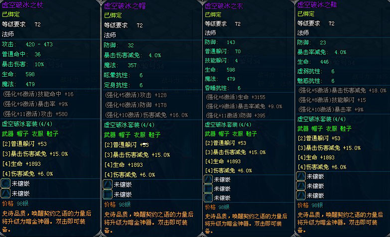 套装衣服,品质:紫色,等级需求:72级,职业:法师 |