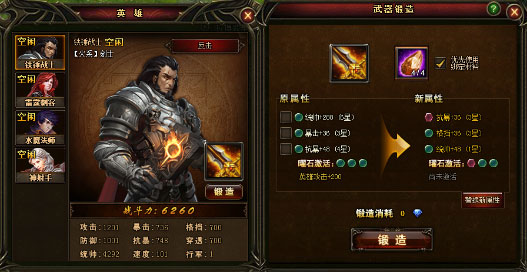 英雄武器:可通过武器锻造来提高英雄属性。