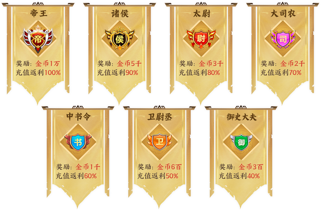 2爵位奖励立马发放。充值返利特权能获得的金币数将根据活动时间内该角色的总充值金币数计算,返利金币将于6月、7月、8月的18号0点通过邮件分3次返还。