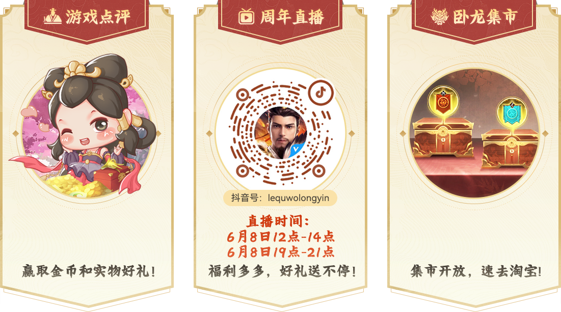 直播开始前,各位主公记得先关注下卧龙吟抖音号哦(lequwolongyin),也可以打开抖音扫一扫下方二维码关注。
