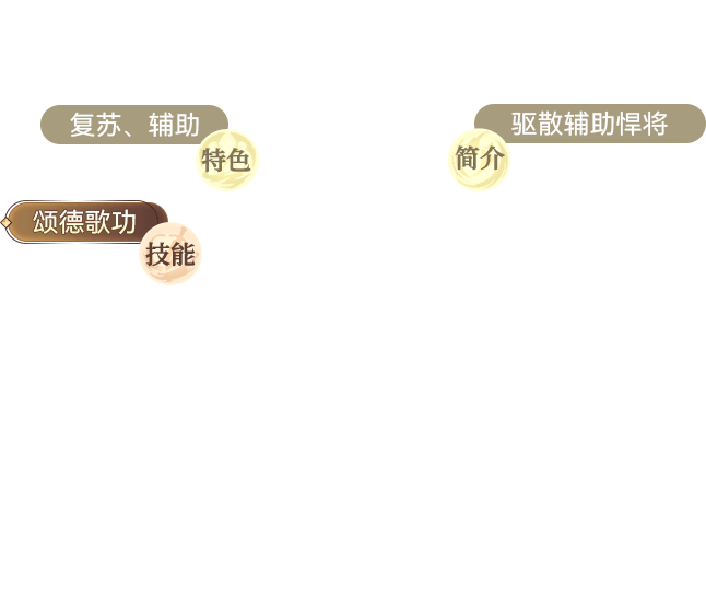 [辅助]使我方其他武将回复60+N士气,使自身进入【月魂】,持续2回合,有25%概率驱散我方全体减益状态(与玩家对战时最多驱散每个我方武将2个减益状态),使我方其他武将进入【振奋】(每回合回复25士气),持续2回合,回复自身145士气